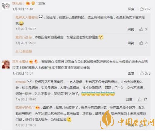 網(wǎng)友@四月水蜜桃說:“我覺得必須取消,說乘客在公共區(qū)域吸煙就行,是沒有坐過節(jié)假日的綠皮火車吧,過道上擠的都是人,抽煙的根本不管你,直接在你面前抽。”