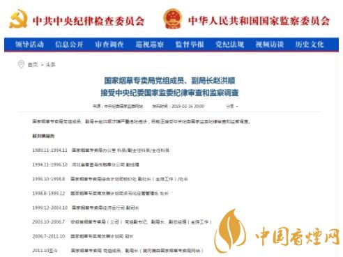 目前,國(guó)家煙草專賣(mài)局網(wǎng)站上關(guān)于趙洪順的相關(guān)新聞報(bào)道及重要講話已被刪除。