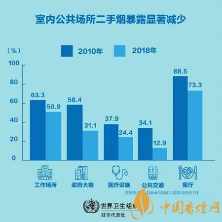 最近發(fā)布的2018年中國(guó)成人煙草調(diào)查顯示,過去十年中國(guó)控?zé)煿ぷ魅〉昧酥匾M(jìn)展。與八年前相比,現(xiàn)在中國(guó)人遭受二手煙危害的幾率要小很多,室內(nèi)公共場(chǎng)所二手煙暴露的顯著減少就證明了這一點(diǎn),比如工作場(chǎng)所(63.3%降至50.9%),政府大樓(58.4%降至31.1%),醫(yī)療設(shè)施(37.9%降至24.4%),公共交通(34.1%降至12.9%),甚至餐廳(88.5%降至73.3%)。