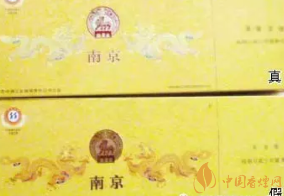 真煙條盒側(cè)面、小盒底部的老南京注冊商標圖案,紅色以外的底色部分發(fā)黃;假煙的老南京注冊商標圖案發(fā)白,圖案模糊。#p#副標題#e#