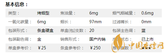 包裝色調:藍(金) 小盒條碼:6901028115377 條包條碼:6901028115384 單包支數(shù):20