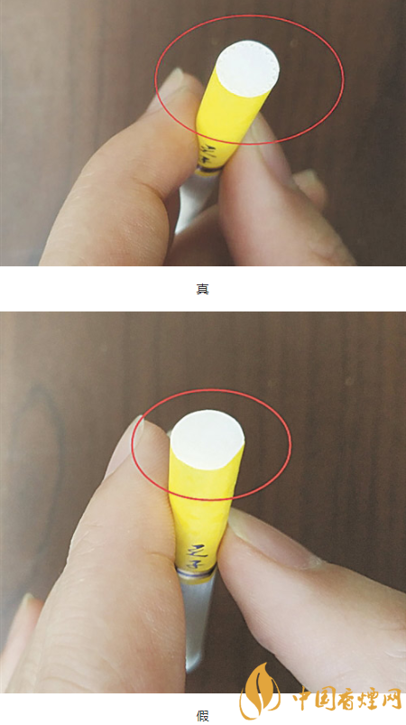 4.煙支濾嘴:真煙過濾嘴有凹槽,假煙沒有。