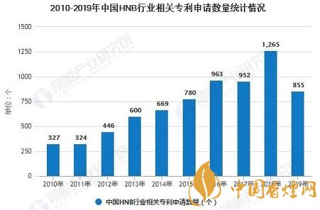 通過在Soopat上對(duì)“加熱不燃燒煙”的搜索,截至2019年年底,我國(guó)已有加熱不燃燒煙相關(guān)專利9278個(gè)。從整體來看,2013-2018年我國(guó)加熱不燃燒煙草的申請(qǐng)數(shù)量呈現(xiàn)上漲的趨勢(shì),在2019年小幅度下滑,2019年HNB的相關(guān)專利申請(qǐng)數(shù)是855個(gè)。