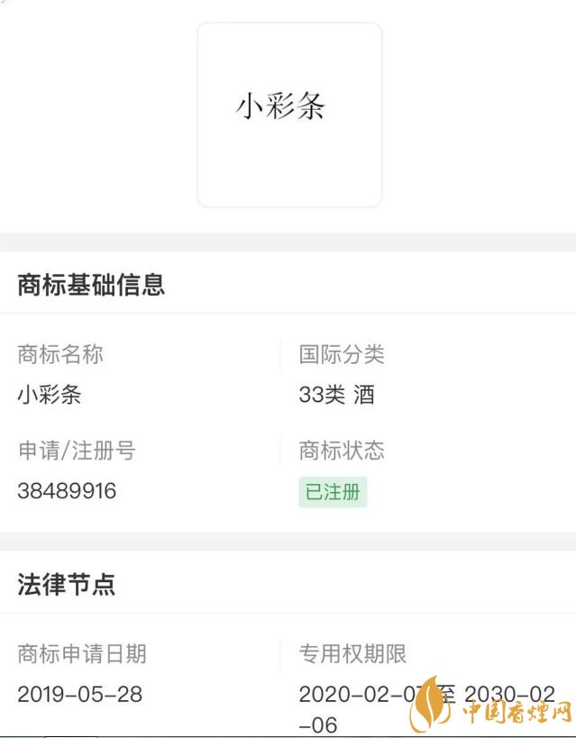 據(jù)了解,汽化酒這個(gè)項(xiàng)目,狼煙天下在2019年5月就開始立項(xiàng)了。還特意在33酒類申請(qǐng)了商標(biāo),商標(biāo)名字也叫做“小彩條”。
