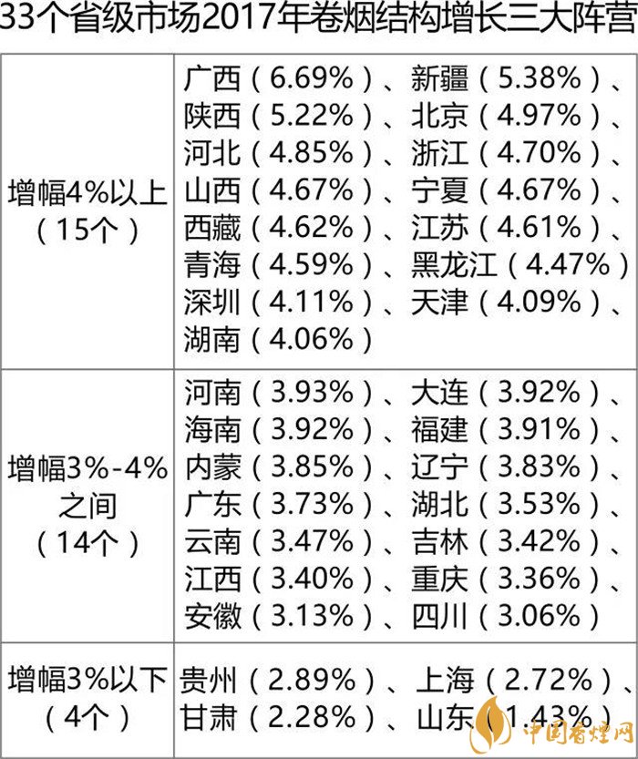 結(jié)構(gòu)升級(jí)既是行業(yè)所愿,也是大勢(shì)所趨。其中,有幾個(gè)值得進(jìn)一步觀察的現(xiàn)象:一是單箱值邁入3萬(wàn)元的省級(jí)市場(chǎng)已達(dá)15個(gè),總體以華東、華南、西南兩大區(qū)域?yàn)橹?北方只有北京市)。二是一類煙成為結(jié)構(gòu)提升的主動(dòng)力,全年一類卷煙銷量1058.60萬(wàn)箱,同比增加70.35萬(wàn)箱,增長(zhǎng)7.11%。三是有8個(gè)省級(jí)市場(chǎng)單箱結(jié)構(gòu)同比增加值沒(méi)有達(dá)到1000元,分別是山東、甘肅、吉林、貴州、遼寧、四川、內(nèi)蒙和黑龍江,其中,山東煙民消費(fèi)最不給力,僅增加360元。四是結(jié)構(gòu)最高的仍然是浙江,單箱值達(dá)到43663元,最低的仍然是河北,單箱值為22375元,相差接近一倍。