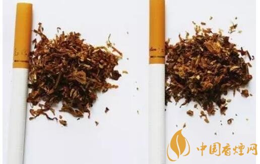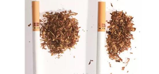 假煙煙支過(guò)濾嘴較短,長(zhǎng)度約為20mm,制絲工藝粗糙,色澤發(fā)暗無(wú)光澤、煙絲中含碎末較多,大量梗絲未經(jīng)過(guò)膨脹處理,無(wú)造紙法再造煙葉,與真品特征存在明顯差異。