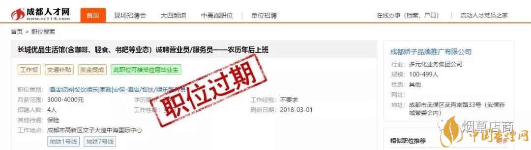 前面為大家介紹了,四川中煙第一次新零售發(fā)聲 創(chuàng)新高質(zhì)量發(fā)展全力謀變(優(yōu)品生活體驗(yàn)店)。朋友圈里確實(shí)有長(zhǎng)城優(yōu)品生活館的H5宣傳介紹,而且也確實(shí)聲稱自己是“全國(guó)首家煙草集合店”。在介紹里面也有它是“煙草、咖啡、輕食、書籍與文創(chuàng)產(chǎn)品”五大生活元素的完美融合者。它是四川中煙產(chǎn)品展示銷售平臺(tái)。據(jù)說(shuō)本月成都長(zhǎng)城優(yōu)品生活館開(kāi)啟。此外,小編也在成都人才網(wǎng)看到了已經(jīng)過(guò)期的“長(zhǎng)城優(yōu)品生活館(含咖啡、輕食、書吧等業(yè)態(tài))誠(chéng)聘營(yíng)業(yè)員/服務(wù)員——農(nóng)歷年后上班”的招聘啟事,通過(guò)職位描述可以感受店內(nèi)的大概服務(wù)