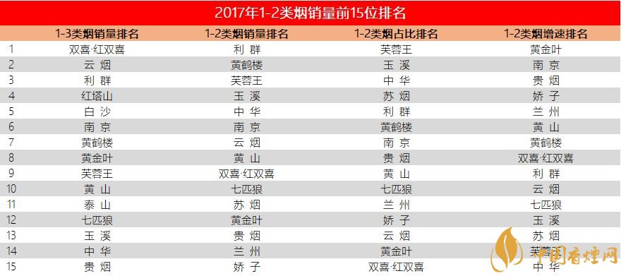 表二:2018年前兩月1-2類煙銷量前15位排名