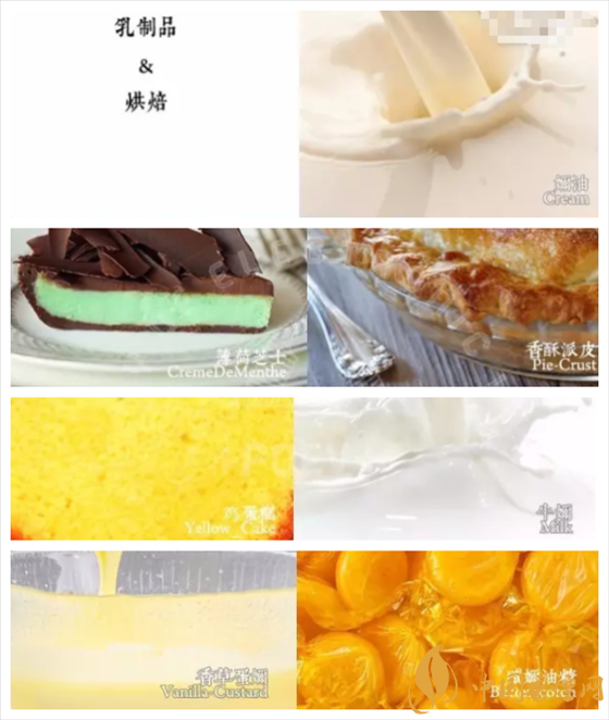 奶味如牛奶&奶酪以及烘焙的蛋糕餅干類,還有圖里沒有的酸奶。這一類煙油擁有較好的適口性,缺點是抽多了容易膩,也是也是常見煙油口味表之一。#p#副標題#e#