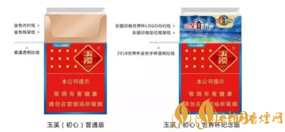 1、立足于產(chǎn)品本身,卷煙營銷新思路通過推出特色產(chǎn)品博眼球,刷存在感。比如2018世界杯版云產(chǎn)煙新裝上市(對比圖):云南中煙將在2018年5月下旬—7月上旬,針對云煙(硬云龍)、云煙(細(xì)支云龍)、玉溪(初心)、紅塔山(細(xì)支傳奇)、紅河(A7)五個規(guī)格推出世界杯版本,在原有包裝的基礎(chǔ)上,加入了世界杯元素。據(jù)悉,主要是對產(chǎn)品的條盒、小盒等局部改版調(diào)整。通過這種直接的視覺傳達(dá),能夠在向消費(fèi)者傳遞世界杯信息和精神的同時,讓消費(fèi)者體會到企業(yè)和品牌對于熱點(diǎn)的敏銳捕捉,留下好印象。