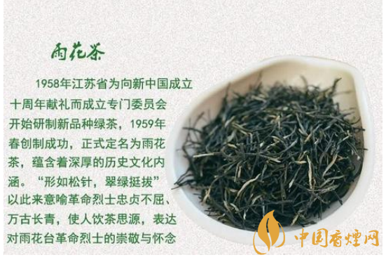 后來,雨花臺一帶開始遍布蔥郁碧綠的茶園。雨花茶的色、香、味、形俱佳,她外形圓綠、條索緊直、峰苗挺秀,帶有白毫,猶如松針,象征著革命先烈堅貞不屈、萬古長青的英雄形象。