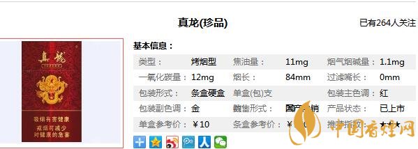 真龍珍品香煙參數(shù)信息