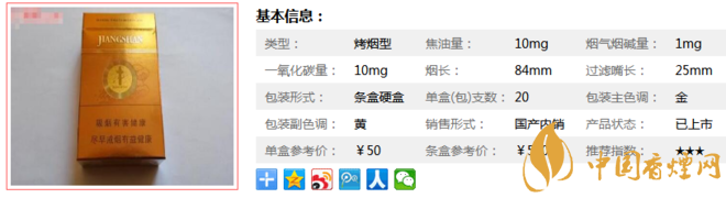 | 類型 :烤煙型 | 焦油量 :10mg | 煙氣煙堿量 :1mg | 一氧化碳量 :10mg |