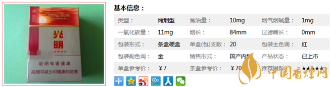 以上便是由香煙網(wǎng)小編為大家介紹的關(guān)于黃山金光明價(jià)格及參數(shù) 60年代老牌香煙的相關(guān)信息,想要了解更多有關(guān)內(nèi)容請點(diǎn)擊:光明金世紀(jì)香煙多少錢一包 光明金世紀(jì)香煙口感評測