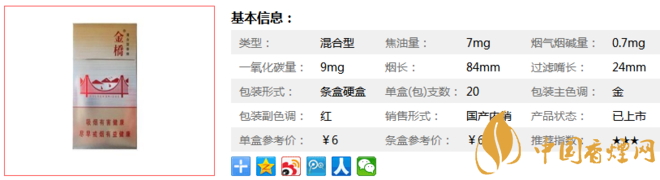 金橋硬的焦油為8mg,基本符合現(xiàn)在國際混合煙品的走向。同樣為8mg的焦油,同樣為6塊的價(jià)格,硬金橋幾乎沒有對(duì)手,這也造就了它,為什么那么受歡迎的原因。下面我們一起來看金橋硬的參數(shù)信息:焦油量:7mg. 煙堿量:0.7mg. 一氧化碳量:9mg.