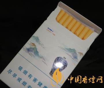 古瓷細(xì)支以君子雅興,做最美煙包。遠(yuǎn)看山巒交錯(cuò),云海繚繞;近賞元、清兩代珍品瓷器。在“瓷中有山水,天地?zé)o限大”的詩(shī)情畫(huà)意中品味古瓷細(xì)支,讓觀者心情徜徉于綠水青山間。嘴部幽藍(lán)色的古瓷二字和淡淡的山水圖案交相輝映。