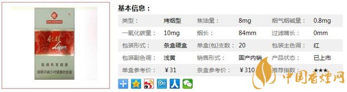 | 類(lèi)型 :烤煙型 | 焦油量 :8mg | 煙氣煙堿量 :0.8mg | 一氧化碳量 :10mg |