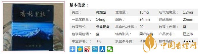 香格里拉藍卡,煙支長84mm,濾嘴長25mm,創(chuàng)新采用變頻油墨防偽技術(shù),使用全息激光包裝材料,首次在煙標上采用人民幣后線防偽技術(shù),多種印刷工藝結(jié)合,不易被抄襲模仿,擁有自己成熟獨特的制煙工藝,煙絲不粘連,不易回潮,切邊完整。下面我們一起來看香格里拉藍卡的參數(shù)信息:焦油量:15mg. 煙堿量1.2mg. 一氧化碳量:14mg.