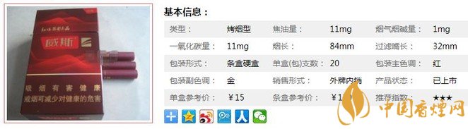 新款式的威斯包裝還是比較好看的,味道從以前的混合型改為現(xiàn)在的烤煙型,煙氣飽滿濃郁,但是沒什么香氣。但還是對的起這個價格的,口感還行,但是屬于小眾化香煙。經(jīng)香煙網(wǎng)小編市場調(diào)查威斯經(jīng)典售價為15元/包。