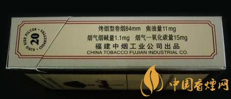 | 煙長(zhǎng):84mm | 過(guò)濾嘴長(zhǎng):24mm | 包裝形式:條盒硬盒 | 單盒(包)支數(shù):20 |
