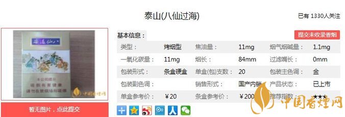 泰山八仙過??诟泻臀兜缹賹嵧玫模泄蓾庥舨杼鹣愕奈兜?。加上煙盒與煙支的包裝設計,也有著自己的個性,算得上是一款性價比比較高的香煙,值得一抽。經(jīng)香煙網(wǎng)小編市場調查泰山八仙過海售價為20元/包。