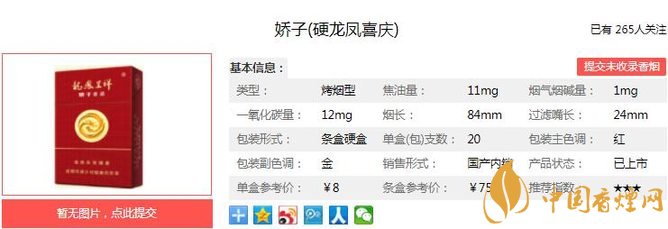 三、嬌子硬龍鳳喜慶香煙參數(shù)