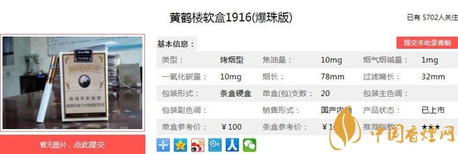 以上便是由香煙網(wǎng)小編為大家介紹的關(guān)于黃鶴樓軟盒1916(爆珠版)多少錢一包 1916首開爆珠先河的相關(guān)信息,想要了解更多有關(guān)內(nèi)容請(qǐng)點(diǎn)擊:貴煙福多少錢一包 貴煙福口感及參數(shù)介紹