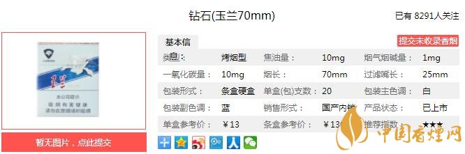 以上便是由香煙網(wǎng)小編為大家介紹的關(guān)于鉆石玉蘭70mm價(jià)格及參數(shù)介紹 煙支雖短但香味不減的相關(guān)信息,想要了解更多有關(guān)內(nèi)容請點(diǎn)擊:雙喜紅郵喜好抽嗎 雙喜紅郵喜價(jià)格及參數(shù)介紹