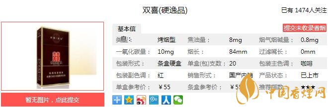 以上便是由香煙網(wǎng)小編為大家介紹的關于雙喜硬逸品多少錢一包 雙喜硬逸品口感及參數(shù)介紹的相關信息,想要了解更多有關內容請點擊:黃金葉硬黃金多少錢一盒 黃金葉硬黃金口感醇香細膩