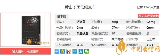 黃山黑馬細支多少錢一包 黃山最新細支香煙