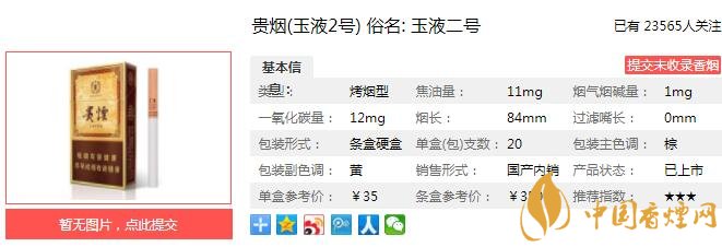 貴煙(玉液2號(hào))科學(xué)運(yùn)用酒中豐富自然香氣成分,通過(guò)與天然、原生態(tài)的煙草本香互相配伍,形成豐富、多層次的復(fù)合香韻,實(shí)現(xiàn)煙香與酒味的共同融合,成卷煙產(chǎn)品保潤(rùn)增香、口感獨(dú)特、回味舒適的特點(diǎn)。經(jīng)香煙網(wǎng)小編市場(chǎng)調(diào)查貴煙(玉液2號(hào))售價(jià)為35元/包。