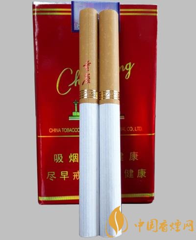 天子(重慶紅)包裝為激光防偽鐳射簽內(nèi)容,與煙盒正面一樣。煙盒頂端除了顏色與中華不同外,設(shè)計(jì)方式很像,尤其是錫紙上的重慶字樣,也與軟中華設(shè)計(jì)有異曲同工之妙。尾端是重慶的漢語拼音字樣,字體樣式與煙盒背面相同。這款重慶紅的整體包裝,酷似軟中華香煙。