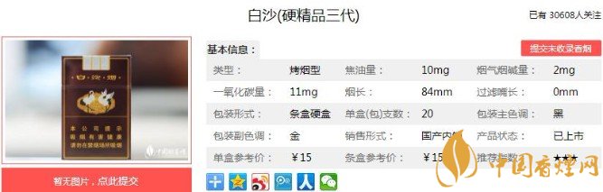 以上便是香煙網(wǎng)小編為大家介紹的關(guān)于兩次改良終成精品,白沙硬精品三代價格15元一包!的相關(guān)信息,看完之后大家是不是對于白沙(硬精品三代)的相關(guān)信息更加了解呢。大家還想查詢更多的相關(guān)內(nèi)容歡迎點擊:白沙軟和天下口感評鑒,百元價格級別的良心煙品