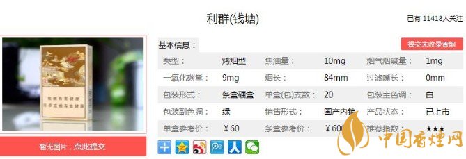以上便是香煙網小編為大家介紹的關于利群錢塘香煙價格及口感點評,最漂亮的利群香煙!的相關信息,看完之后大家是不是對于利群(錢塘)這款香煙的相關信息更加了解呢。大家還想查詢更多的相關內容歡迎點擊:利群休閑系第一款細支高價煙,僅僅是官方報價就達到了100元一包!