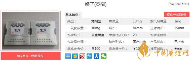 | 類型 :烤煙型 | 焦油量 :10mg | 煙氣煙堿量 :1mg | 一氧化碳量 :10mg |