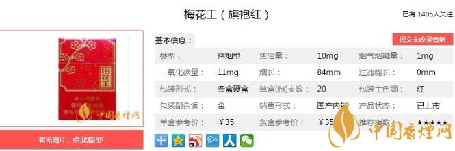 以上便是香煙網(wǎng)小編為大家介紹的關于梅花王旗袍紅多少錢一包 梅花王旗袍紅價格及口感分析的相關信息,看完之后大家是不是對于梅花王(旗袍紅)這款香煙的相關信息更加了解呢。大家還想查詢更多的相關內(nèi)容歡迎點擊:梅花王硬紅多少錢一包 梅花王硬紅參數(shù)及口感(內(nèi)附圖片)