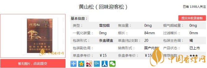 以上便是香煙網(wǎng)小編為大家介紹的關(guān)于黃山松香煙多少錢(qián) 黃山松回味迎客松價(jià)格及圖片分析的相關(guān)信息,大家看完之后是不是對(duì)于黃山松(回味迎客松)的相關(guān)信息更加了解呢,想要了解更多內(nèi)容歡迎點(diǎn)擊:黃山松回味迎客松 機(jī)制雪茄式卷煙口感測(cè)評(píng)