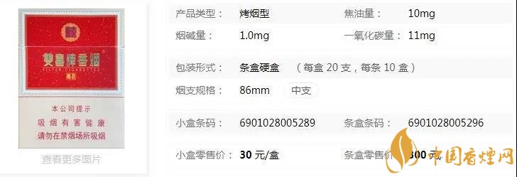 | 類型 :烤煙型 | 焦油量 :10mg | 煙氣煙堿量 :1mg | 一氧化碳量 :11mg |