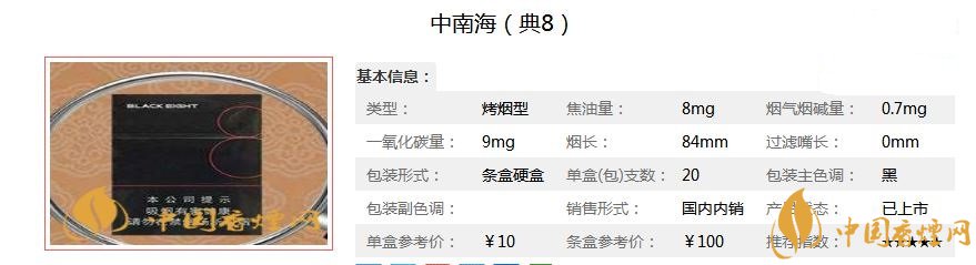 中南海(典8)多少錢(qián)一包?中南海(典8)抽起來(lái)口感如何?6月1日,中南海香煙一新品上市,中南海(典8),對(duì)于這款想上市的香煙,許多煙民還不熟悉,那么這款中南海(典8)多少錢(qián)一包?中南海(典8)抽起來(lái)口感如何?下面小編將為大家從中南海(典8)香煙價(jià)格,包裝以及口感三個(gè)方面介紹這款新煙。