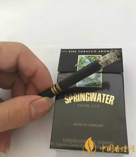 我們來看下這款春泉香煙的包裝,整體彩色黑色主色調,正面一幅泉水圖案,圖案下面是“SPRINGWATER”包裝盒上沒有焦油含量一些理化指標,所以不太清楚。煙嘴上打的四排排焦孔來看,勁道不大。主圖案品牌醒目,總體視覺大氣端莊,采用黑色的煙嘴,十分精美漂亮。