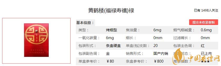 黃鶴樓福祿壽喜四款香煙均采用紅底色,金色字外觀設(shè)計(jì),帶給人們喜慶,大氣,有檔次的品位。煙支規(guī)格都為84MM,每條10盒包裝,單價(jià)均為80元/包。
