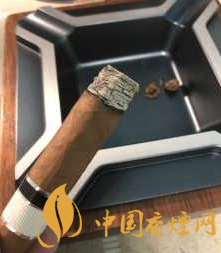 茄體呈現(xiàn)為魚雷壯,小金字塔卷工很棒,茄衣呈現(xiàn)淺棕色,茄帽處理很精細(xì)。綠色的腰花在棕色茄衣映襯下相當(dāng)亮眼,整體搭配協(xié)調(diào)而美觀。