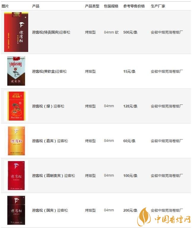迎客松香煙品牌包括了迎客松(特貢國賓),迎客松(黃軟盒),迎客松(綠),迎客松(嘉賓),迎客松(精制貴賓),迎客松(國賓),迎客松(新),迎客松(禮賓)等。那么迎客松香煙多少錢一包呢?下面香煙網(wǎng)小編為大家介紹迎客松香煙價(jià)格表和圖片大全。