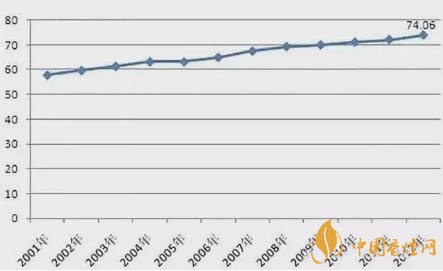 根據(jù)前瞻產(chǎn)業(yè)研究院發(fā)布的《2013-2017年中國煙草制品行業(yè)產(chǎn)銷需求與投資預(yù)測分析報告》,2001-2012年,中國煙草制品行業(yè)毛利率維持在57%以上的較高水平,且呈現(xiàn)逐年上升的態(tài)勢,到2012年行業(yè)的毛利率達到了74.06%。