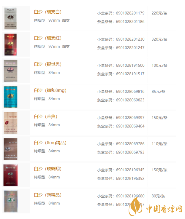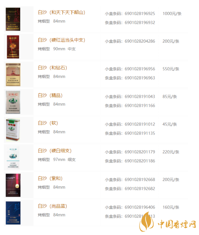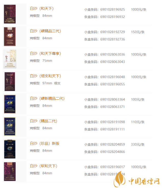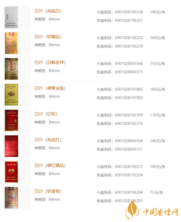 2020年白沙香煙最新價格表和圖片大全