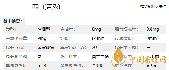 泰山青秀煙長(zhǎng)84mm,屬于低焦油系列香煙,煙氣較淡,入口輕柔,煙勁挺小的外觀很大氣到喉嚨里后也很順暢在這個(gè)價(jià)位里是挺不錯(cuò)的一款煙了。下面我們一起來看泰山青秀的參數(shù)信息:焦油量:8mg煙堿量:0.8mg一氧化碳量:9mg。