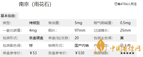 作為南京新一代高端細(xì)支煙代表產(chǎn)品,南京雨花石香煙價(jià)格零售為500元/條。有的地區(qū)南京雨花石香煙價(jià)格甚至已經(jīng)成漲為零售價(jià)高達(dá)800元/條。南京雨花石和南京九五至尊的味道差不多,由于南京雨花石的細(xì)支設(shè)計(jì),入口飽和感稍顯不足,對(duì)于老煙槍來(lái)說(shuō)煙勁稍差點(diǎn)。