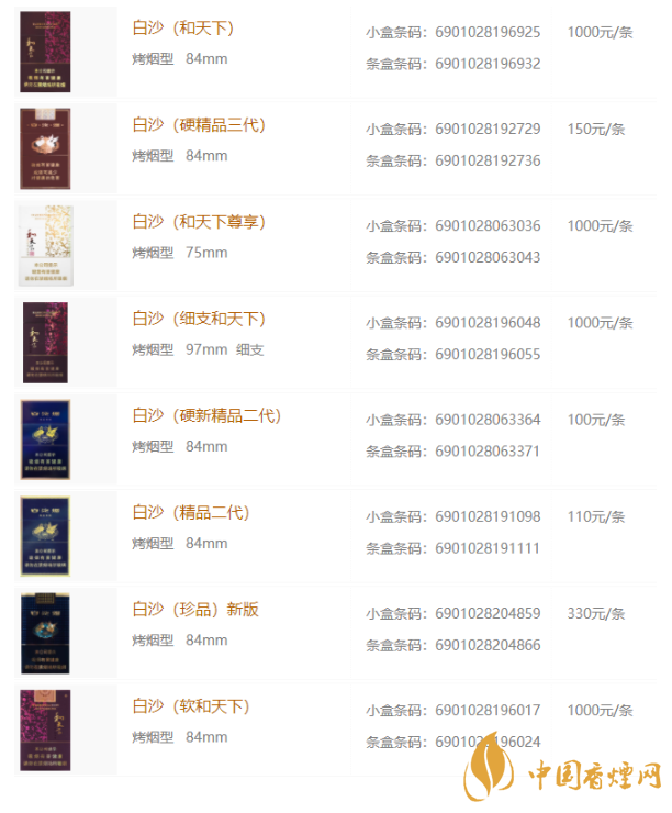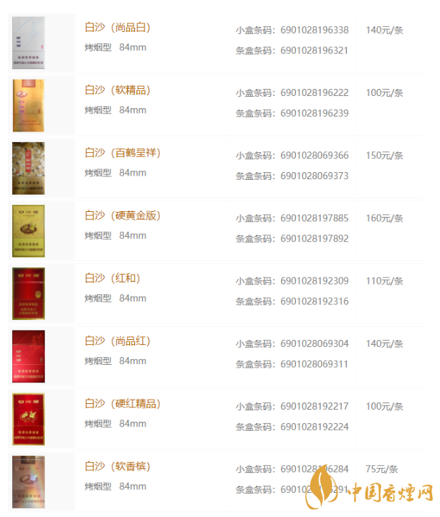 白沙香煙價(jià)格表大全