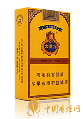 細支大九采用硬盒包裝,外觀印刷設計沒有什么改變,無雜質(zhì)的金礦黃襯托盾牌花邊“大重九”,背面是麥穗包裹99,簡單大氣的包裝卻不失豪華端莊,那么這款大重九多少錢一包,它的價格為100元/包。