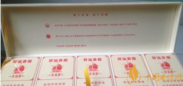 在黃鶴樓香煙大全及價格中,好運有別于樓樓其他品系,凸顯簡單、樸實,沒有以前黃鶴樓香煙的那種花里胡哨的感覺。除了黃鶴樓和好運的品牌標識之外,正反面都印有紅色帆船,和“一帆風順”的字樣。